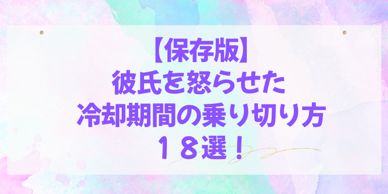 テーマ6では、「彼氏を怒らせた後、ほっとくのは正解?正しい距離の置き方と関係修復法3選(18/18選)」をご紹介します。
