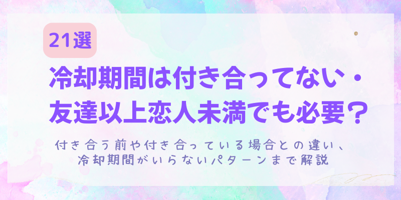 今回は「冷却期間は付き合ってない関係でも意味があるのか、付き合う前や付き合っている場合との違い、そして付き合ってないけど冷却期間を選ぶ前の判断基準」を7つのテーマ・全21選でお伝えしました。